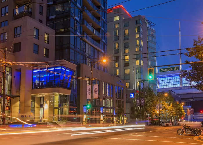 The smoke-free Hotel Blu Vancouver provides a banquet hall for meetings and events, located about 20 minutes' walk from the Canada Place. Situated in close proximity to the Vancouver Public Library, this 4-star luxury hotel features an indoor pool and a steam room, a Jacuzzi, and a sauna.